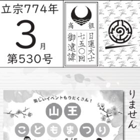 【門祖・開導会 併・山王こどもまつり 4月4日(土)・5日(日)】 門祖・開導会 【前日の座】 4月4日(土) 午後1時30分~ 奉修導師: 小林日元…