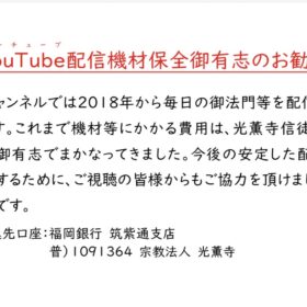 【光薫寺YouTubeチャンネルにて御法門をご視聴の皆様へYouTube配信機材保全ご有志のお勧め】 当チャンネルでは2018年から毎日の御法門等を配…