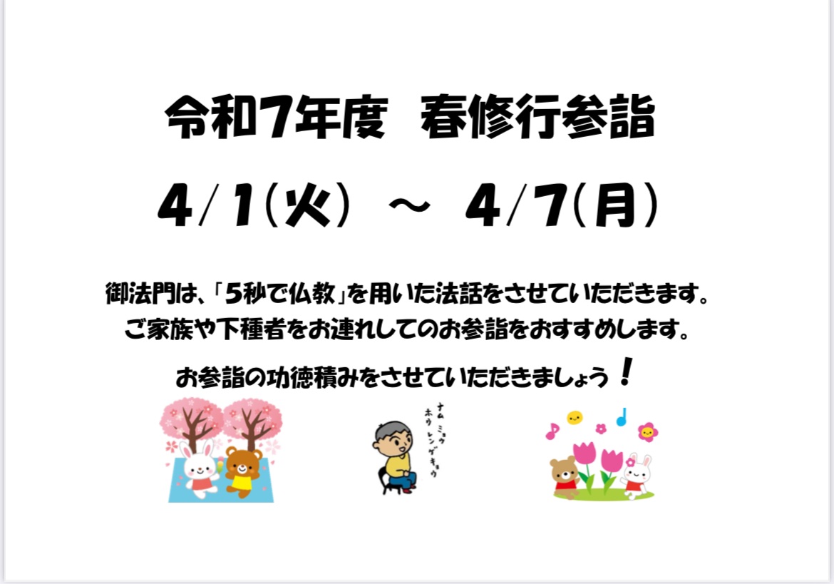 新年度を迎えます。ご家族揃ってのお参詣、功徳積みをおすすめします。