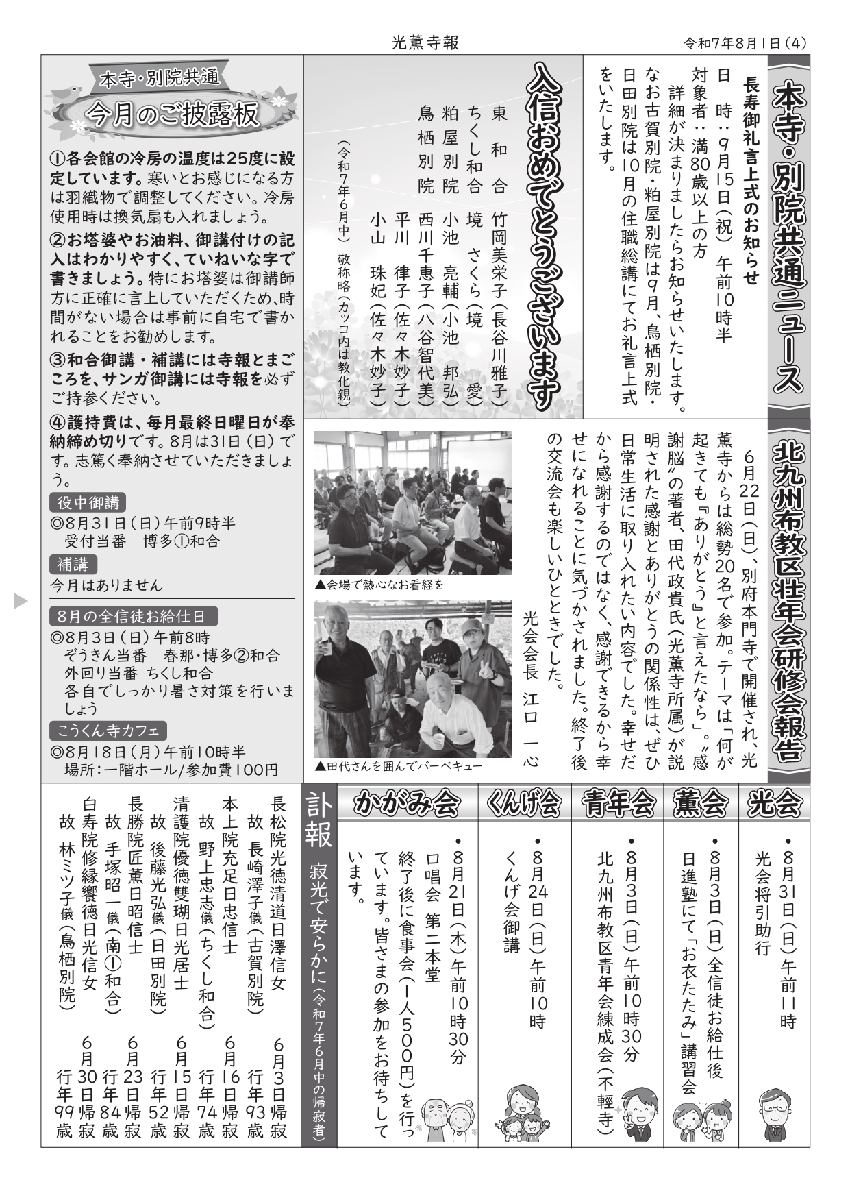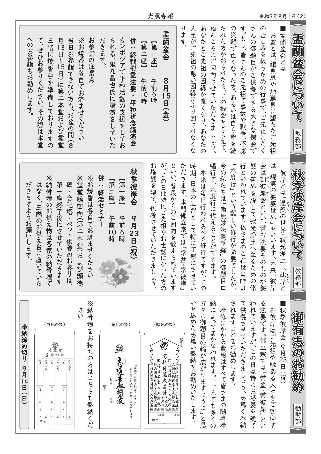 盂蘭盆会併・戦没者慰霊法要・平和祈念講演会 8月15日(金)